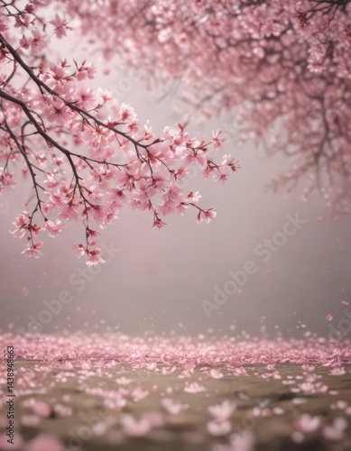 Fototapeta premium Delicate pink sakura petals drift on a soft-focus spring backdrop , nature, dreamy, background