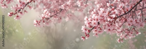 © Kaneki, Fototapeta premium Delicate pink sakura petals drift on soft-focus spring background , flower, tranquility