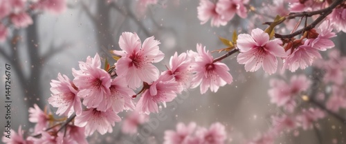 Obraz premium Delicate pink sakura petals drift softly on a bokeh background , close-up, floral