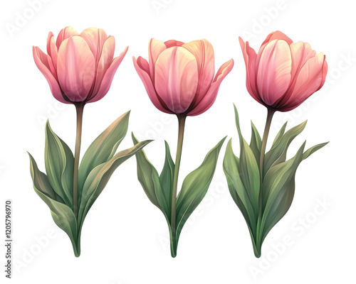 Fototapeta premium Delicate pink tulip flowers a botanical minimalist design floral aesthetics