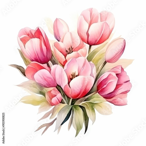 © Nice Seven, Fototapeta premium Delicate Pink Tulips Watercolor Painting