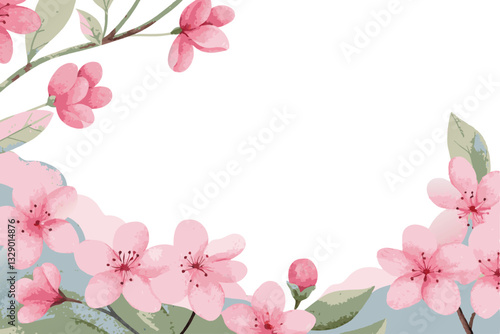 © Graphics, Fototapeta premium Delicate Pink Watercolor Flowers Spring Blossom Floral Frame Border Design