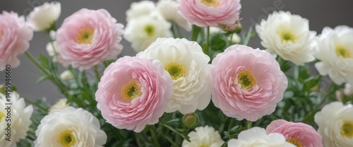 Obraz premium Delicate pink & white ranunculus blossoms, close-up , wallpaper, nature, closeup