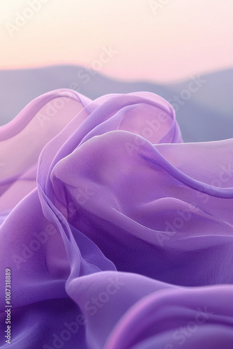 © Janjira, Obraz premium Delicate purple fabric gently flowing, creating an elegant and soft texture against a serene backdrop. Perfect for design and artistic projects.