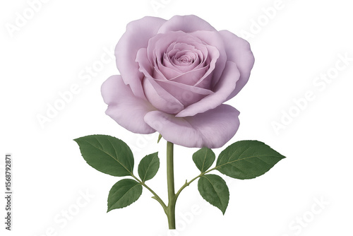 Obraz premium Delicate purple rose blooming amid lush green foliage, resting on pristine...