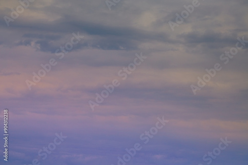 Fototapeta premium Delicate purple sunlight on clouds in blue sky