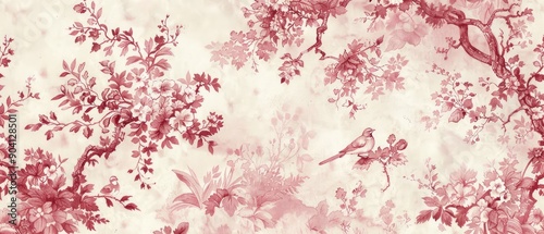 © dwi, Fototapeta premium Delicate Red Floral Pattern with Watercolor Texture