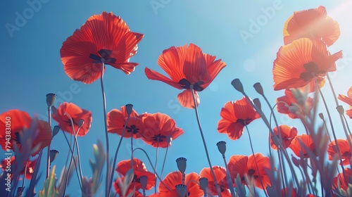 © BG_Illustrations, Obraz premium Delicate Red Poppies Clear Blue Sky Contrast