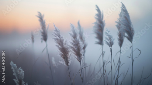 Obraz premium Delicate reeds in a misty sunrise landscape