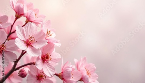 © Krittin, Obraz premium Delicate, repeating blossoms on a light background, wallpaper, floral pattern