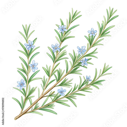 Fototapeta premium Delicate rosemary sprigs with tiny blue flowers, perfect for culinary or herbal designs