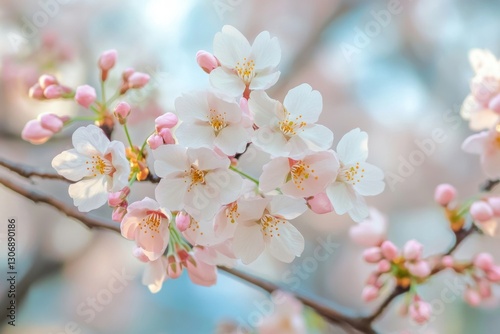 Obraz premium Delicate sakura blooms on branches ideal for spring-themed projects and...
