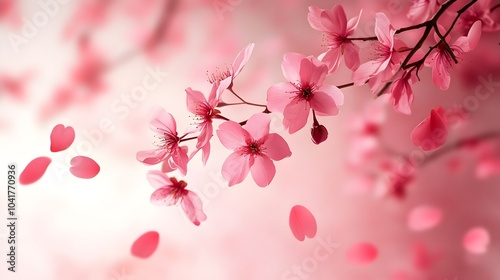 © pkproject, Naklejka premium Delicate Sakura Petals Cascading Across a Serene Gradient Background