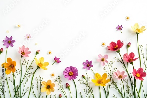 © Sunisa, Naklejka premium Delicate, scattered wildflowers on white background, white, wallpaper, graphic