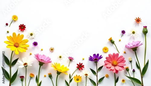 © Withun, Obraz premium Delicate, scattered wildflowers on white background, wildflowers, flowers