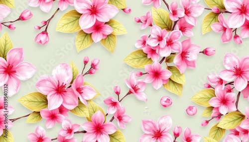 Naklejka premium Delicate seamless pattern of pastel pink blossoms and leaves, floral pattern,...