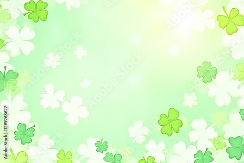 Fototapeta premium Delicate Shamrock Background Pattern in Pastel Green and White