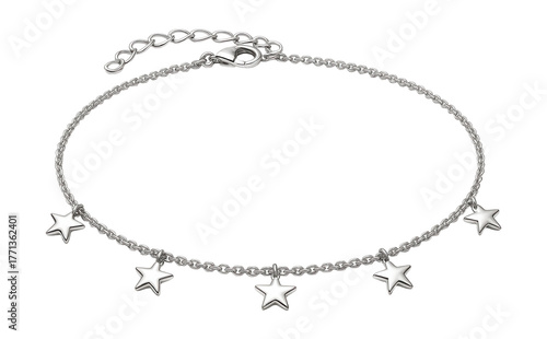 © OMD, Obraz premium Delicate silver anklet featuring charming star accents.