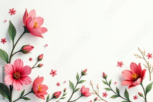 © Jakkrit, Naklejka premium Delicate, small-scale floral print on white background, blossom, pastel