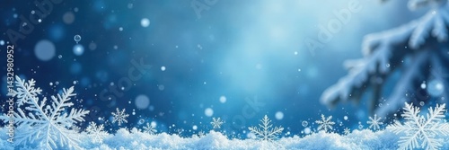 Naklejka premium Delicate snowflake border adorns a winter wonderland background, white, snowflakes, frosty