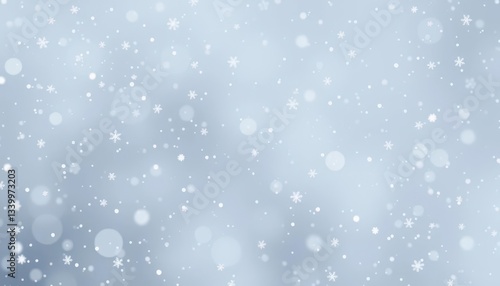 Fototapeta premium Delicate snowflakes drift down against a smooth, silvery gray backdrop,...