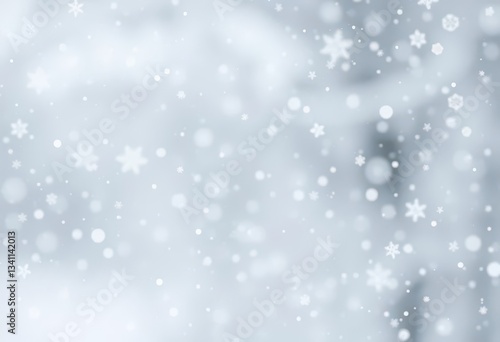 Fototapeta premium Delicate snowflakes drift down against a softly blurred silvery-gray winter...