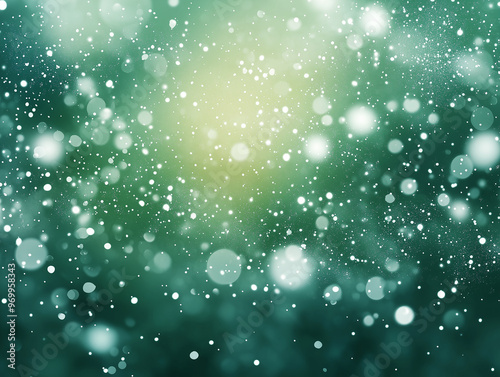 © zphoto83, Fototapeta premium Delicate snowflakes drift gently through the air, creating a tranquil and enchanting winter landscape with a greenish hue in the background