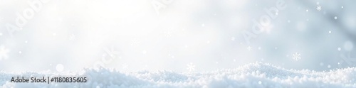 © Sarayuth, Naklejka premium Delicate snowflakes fall gently on a pristine white background, whiteout, gentle falls, winter wonderland