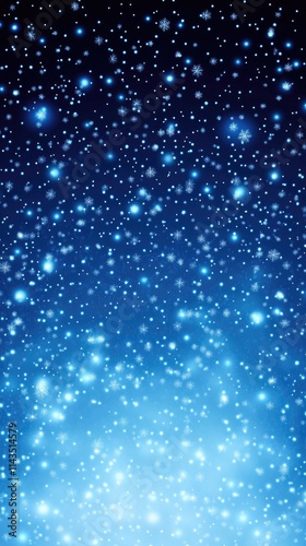 Fototapeta premium Delicate snowflakes swirl gracefully through the cool winter air, painting a picturesque landscape with shimmering blue tones, inviting wonder and tranquility