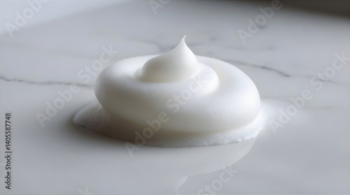© PrismaVibe Studio , Fototapeta premium Delicate soap bubbles resting on smooth white marble texture - perfect for spa and luxury product visuals