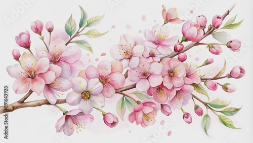 Obraz premium Delicate, soft focus, whimsical, light pink and white cherry blossoms scattered across a pristine, crisp, clean white background.