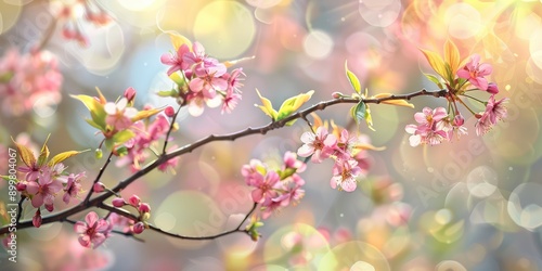 © Tunsale, Obraz premium Delicate spring background. Ai generation.
