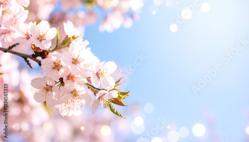 Obraz premium Delicate spring blossoms against a bright sky