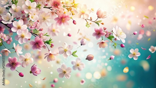 Fototapeta premium Delicate Spring Blossoms Dancing in a Gentle Breeze, Petals Falling Softly on...