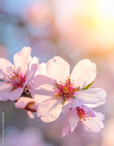 © ayomanceng, Fototapeta premium Delicate spring blossoms in soft sunlight