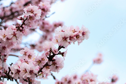 Fototapeta premium Delicate spring pink cherry blossoms on tree outdoors