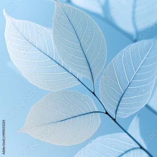 © Studio, Obraz premium Delicate, translucent leaves against a pale blue backdrop