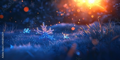 © The 2R Artificiality, Fototapeta premium Delicate transparent snowflakes on winter fur shimmering in bright sunlight