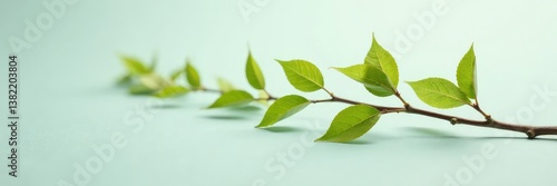 © Thanwara, Obraz premium Delicate tree branches stretched out on a clean surface, leaf, stem