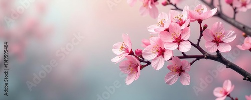 Obraz premium Delicate tree with blooming flowers in pastel hues, soft petals, peaceful haven