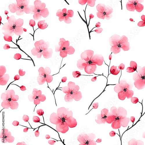 © nur, Fototapeta premium Delicate watercolor blossom pattern on white background.
