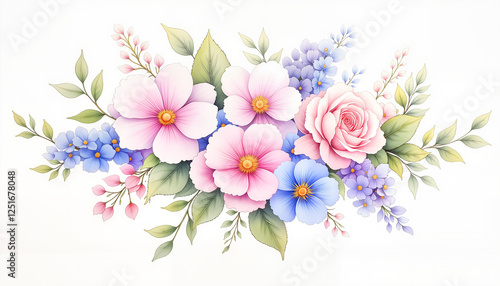 Naklejka premium Delicate watercolor bouquet of cherry blossoms and roses, floral elegance