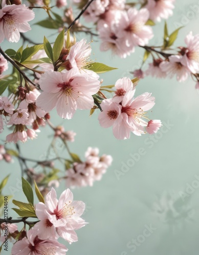 Obraz premium Delicate watercolor cherry blossoms and greenery, flowers, tree branches