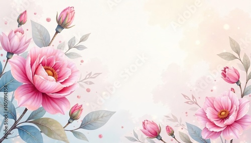 Naklejka premium Delicate watercolor floral motif, soft pastel hues, bloom, subtle