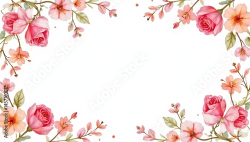 © Wannisa, Fototapeta premium Delicate watercolor floral pattern on white background, elegant, art, pastel