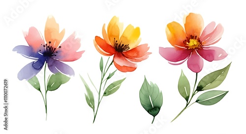© Shahriar507, Fototapeta premium Delicate Watercolor Flower and Leaf Set with Branches on White