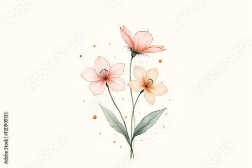 © Танюша Коновал, Naklejka premium delicate watercolor illustration, abstract floral sketch, soft pastel colors, light background, subtle artistic design, nature inspired, minimalistic style, modern art, gentle aesthetics