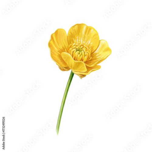 © Bang, Naklejka premium Delicate watercolor illustration of a vibrant yellow buttercup isolated on white background