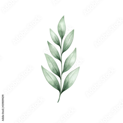 Fototapeta premium delicate watercolor illustration of green leafy branch with multiple leaves, showcasing natural and artistic design. soft colors and gentle strokes create serene and elegant appearance