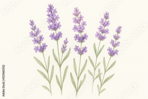 © Bijac, Fototapeta premium Delicate watercolor lavender flower border with soft purple blooms creating elegant floral frame on pristine white background